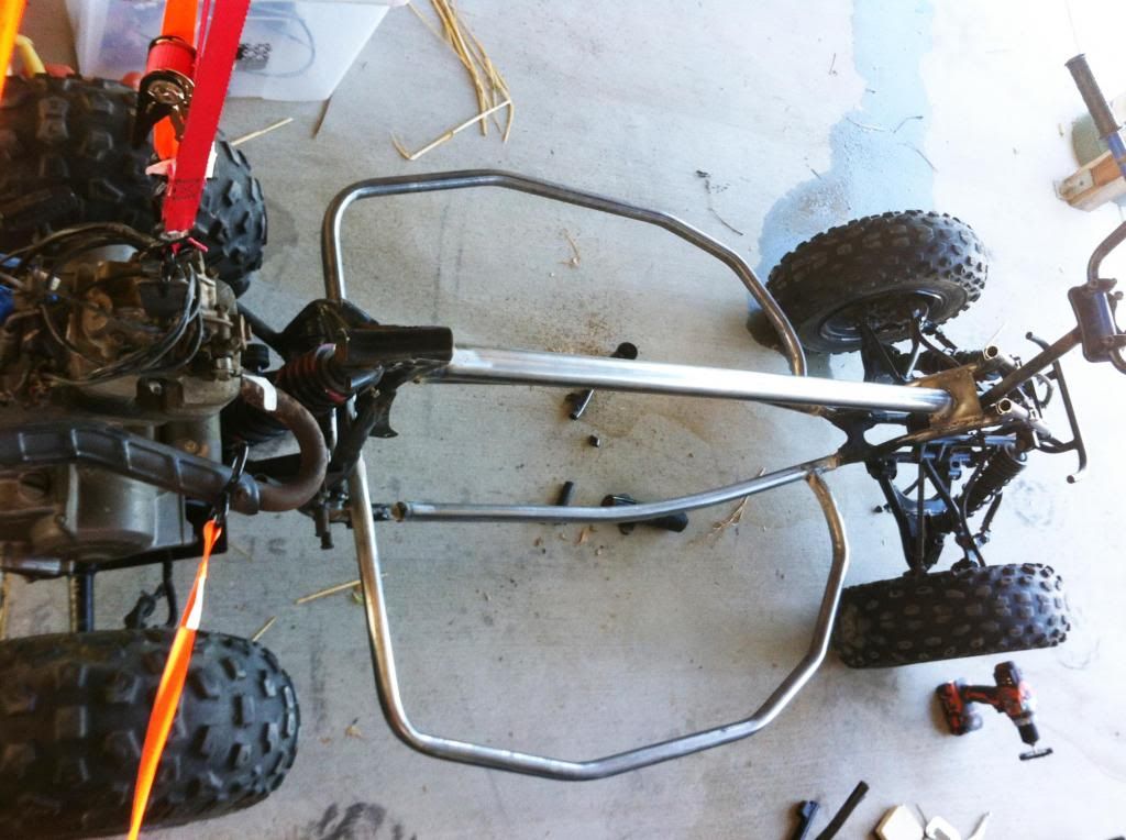 I'm building a kart/buggy based on an old ATV (Suzuki LT230e). I'll be using the front suspension as-is, likewise the rear swing arm setup (and relocating the engine over the rear swingarm); and i'll be getting rid of everything in between.